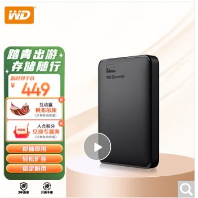 西部数据(WD) 2TB 移动硬盘 USB3.0 Elements 新元素系列2.5英寸 机械硬盘 便携 家用办公 存储备份